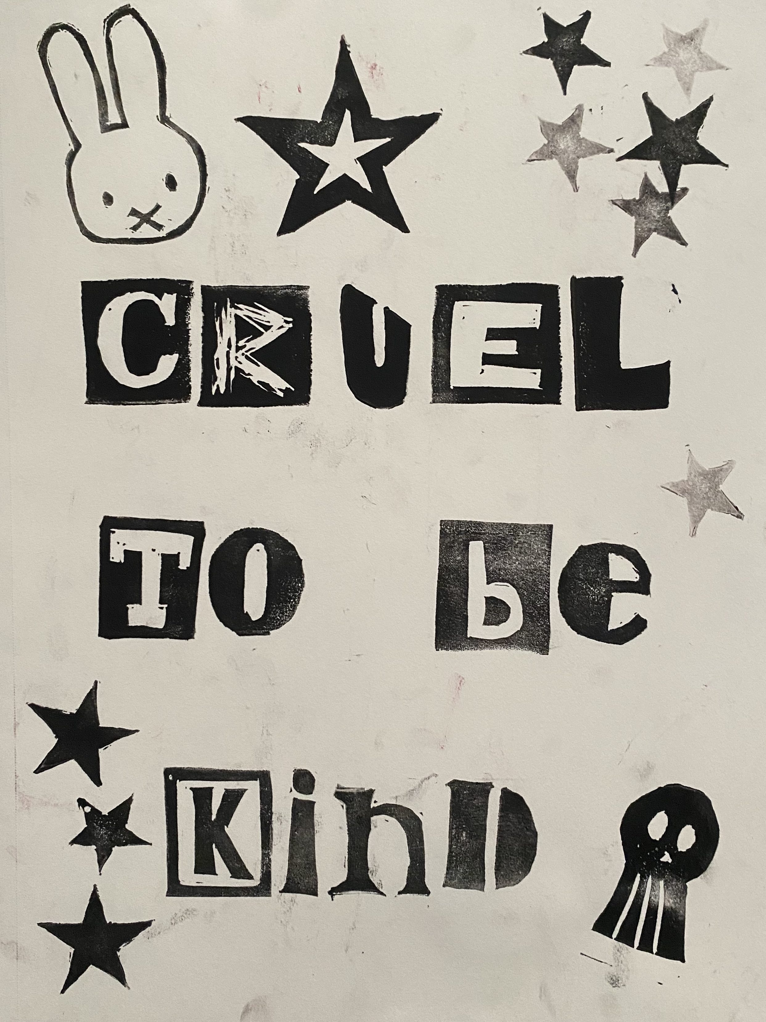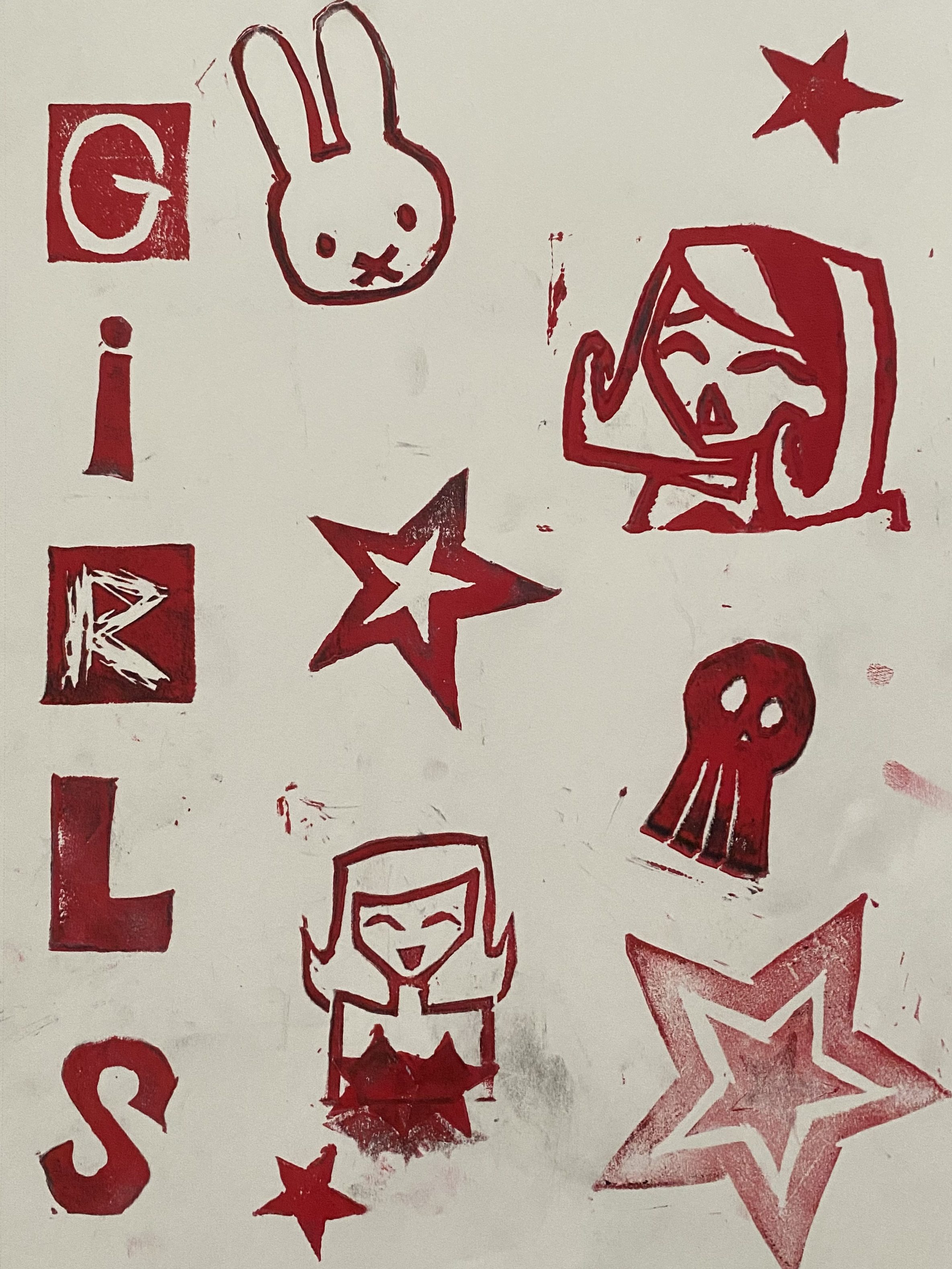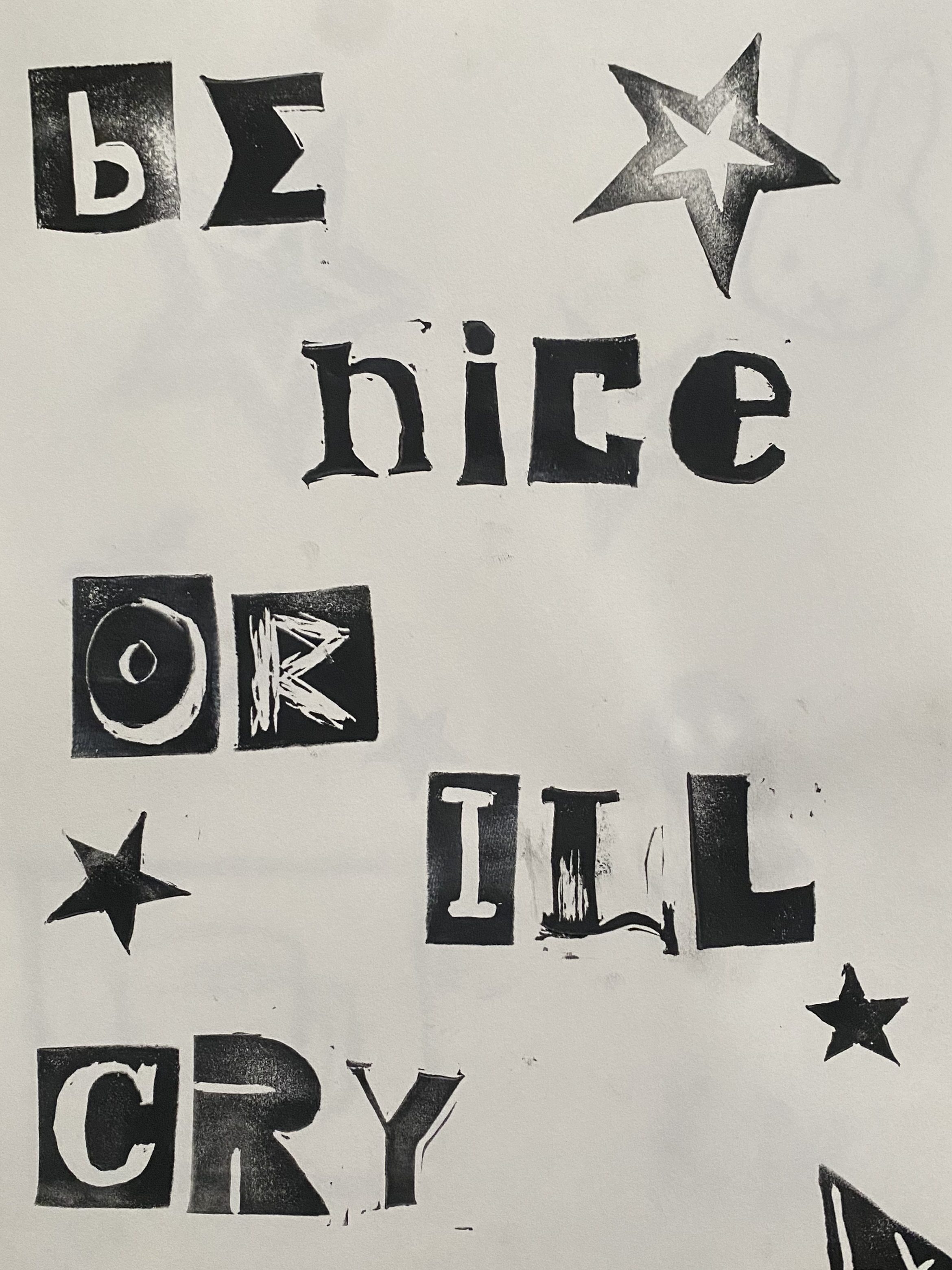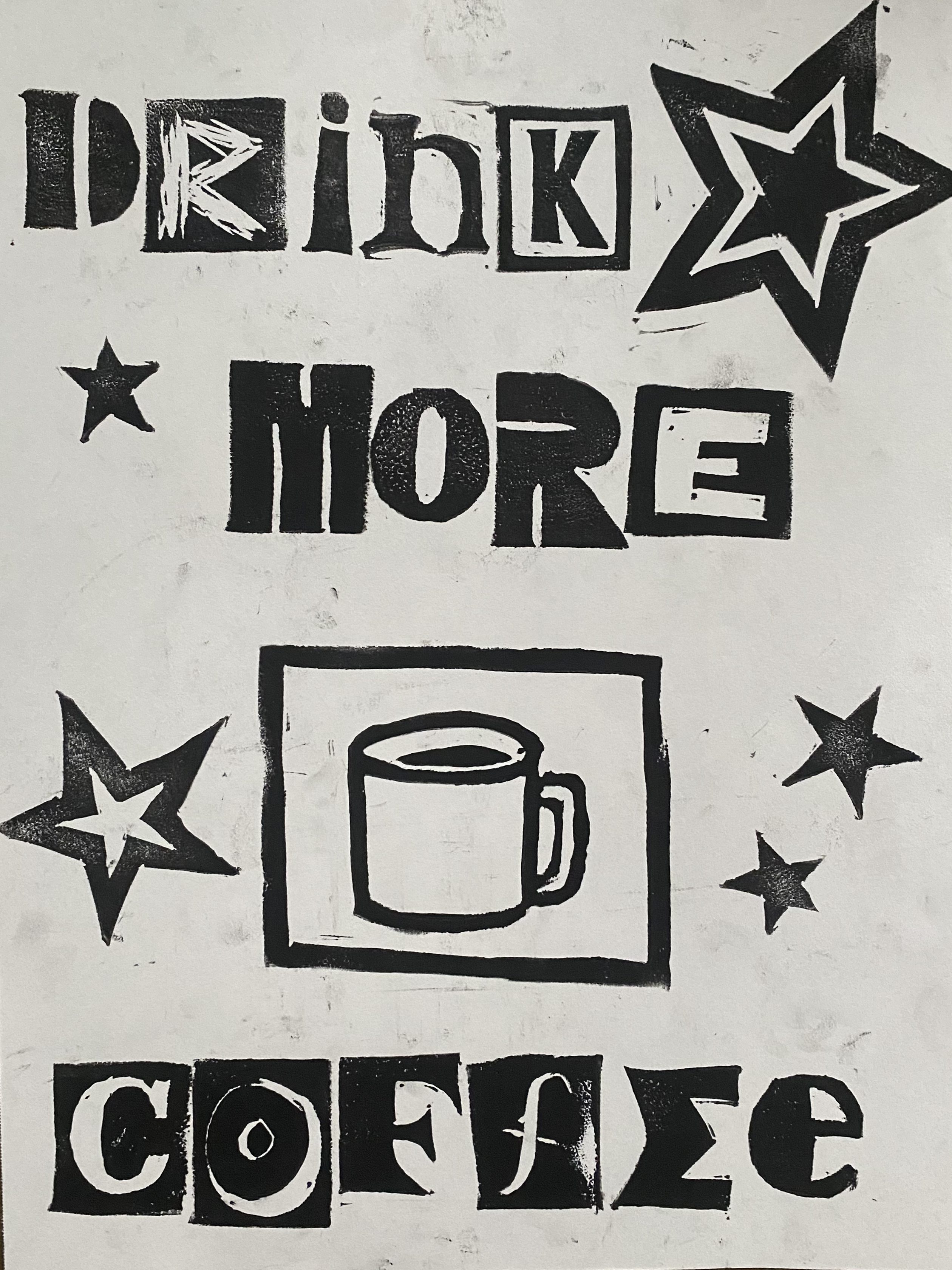 Each letter and design is hand carved and printed.